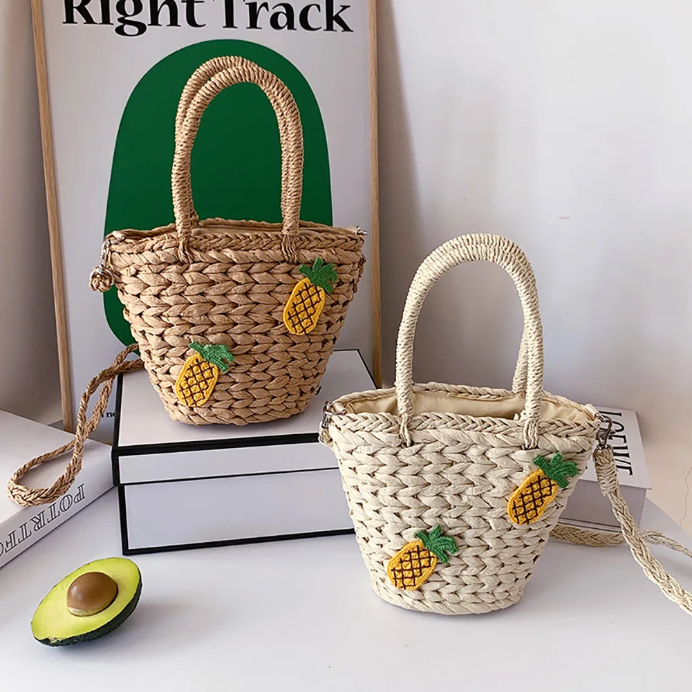 Летняя женская Соломенная Сумка-мешок ручной работы, Пляжная Праздничная соломенная плетеная Сумка-тоут через плечо, сумка с ручками
