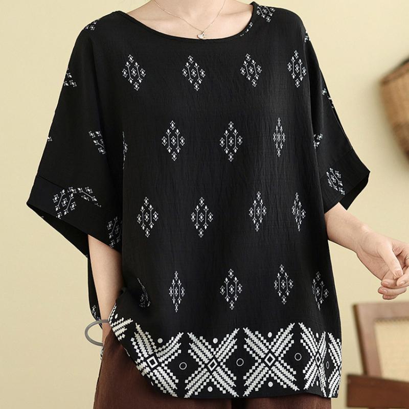 Летняя женская литературная ретро хлопковая круглая горловина свитер с рукавами пять точек универсальная свободная футболка M чёрный