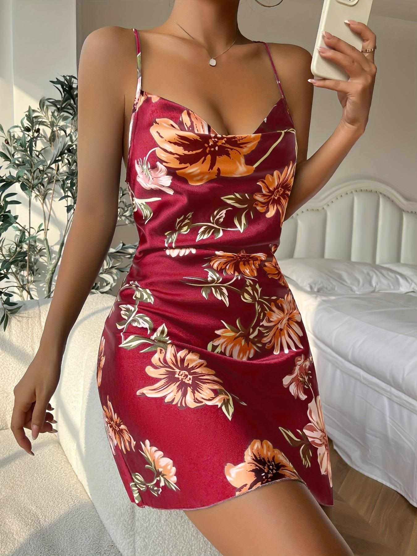 Летняя женская ночная рубашка с цветочным принтом и открытой спиной, с высокой талией, сексуальное короткое домашнее платье, дышащая легкая, мягкая стильная пижама для женщин S