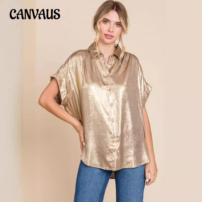 Летняя женская рубашка больших размеров, золотые однобортные свободные топы с короткими рукавами S золотой
