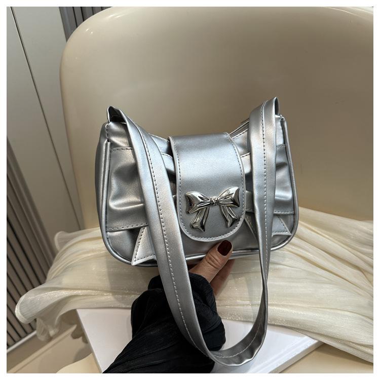 Летняя женская сумка на плечо с бантом во французском стиле, 2024 серебряный