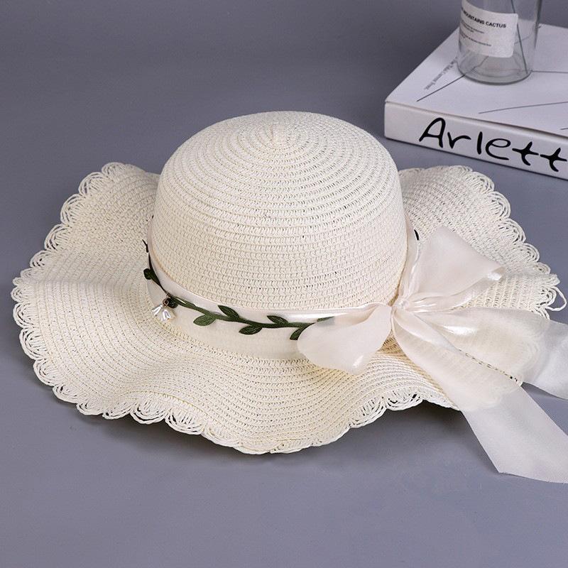 Летняя женская шляпа из соломы с бантом, шляпа от солнца с большими полями для пляжа, дышащая One Size молочный белый