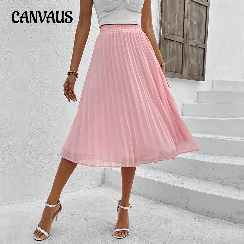 Летняя женская юбка, модная однотонная темпераментная элегантная шифоновая плиссированная юбка, юбка до половины тела
