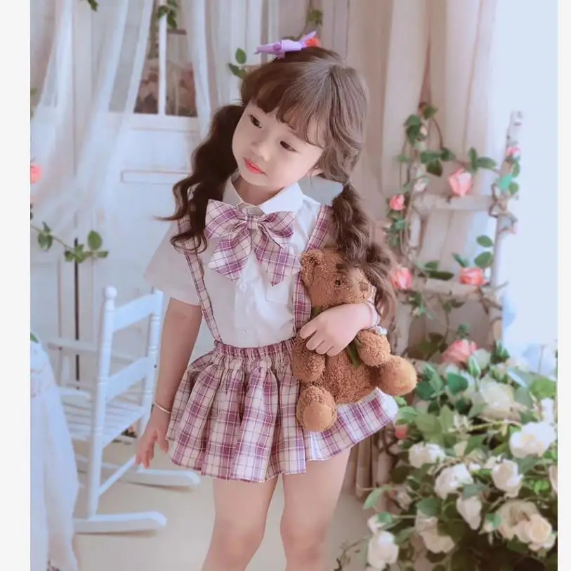 Летняя испанская модель, рубашка с коротким рукавом и клетчатое платье на бретельках, праздвечерние чные пасхальные костюмы для девочек, пл...