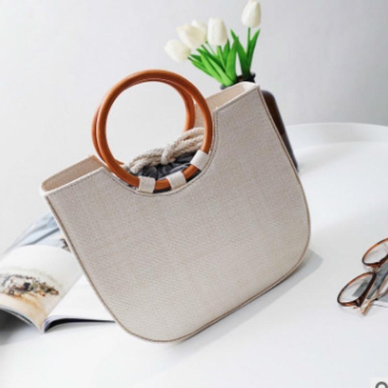 Летняя круглая деревянная ручка вязаная сумка соломенные сумки для женщин сумка-тоут ротанговая сумка через плечо пляжная сумка белый