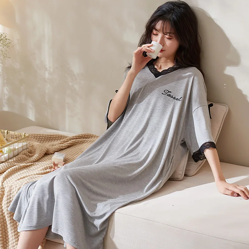 Летняя кружевная ночная рубашка в стиле пэчворк, сексуальная ночная рубашка, женская одежда для сна, новый стиль, милые пижамы с V-образным в...