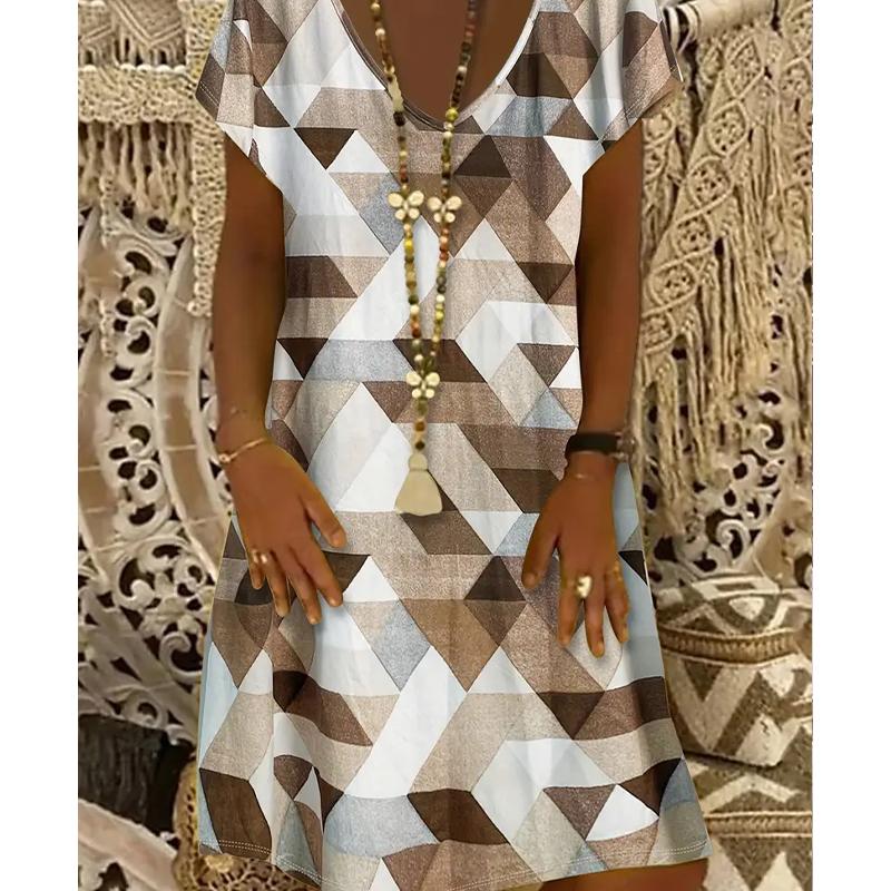 Летняя мода Женское платье с V-образным вырезом и коротким рукавом в стиле ретро с принтом Сексуальное короткое платье-юбка XS красный