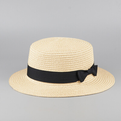 Летняя мода маленькая церемония шляпа пологой соломенной шляпе лук Г-жа Англия, охватывающая крышку шляпы солнцезащитные шляпы для женщин