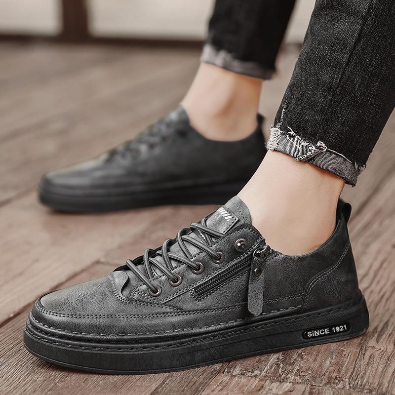 Летняя мужская повседневная обувь с низким вырезом, модная мужская обувь на плоской подошве со шнуровкой из микрофибры, уличная мужская спортивная обувь с боковой молнией 39 серый