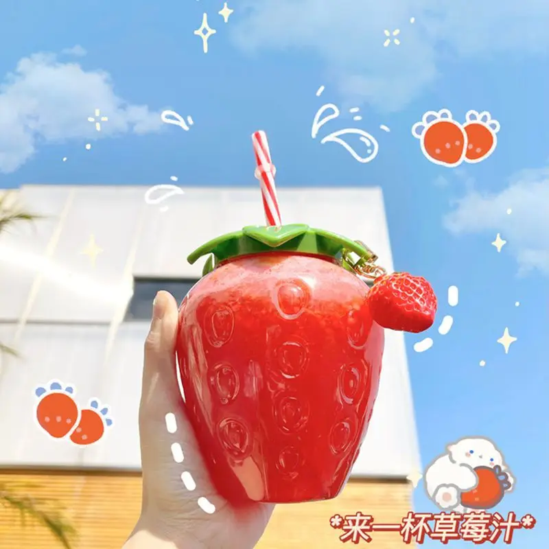 Летняя мультяшная кавайная соломенная чашка с клубникой, пластиковая чашка, милая девушка, чашка для молока, чая, кофе, Студенческая портати...