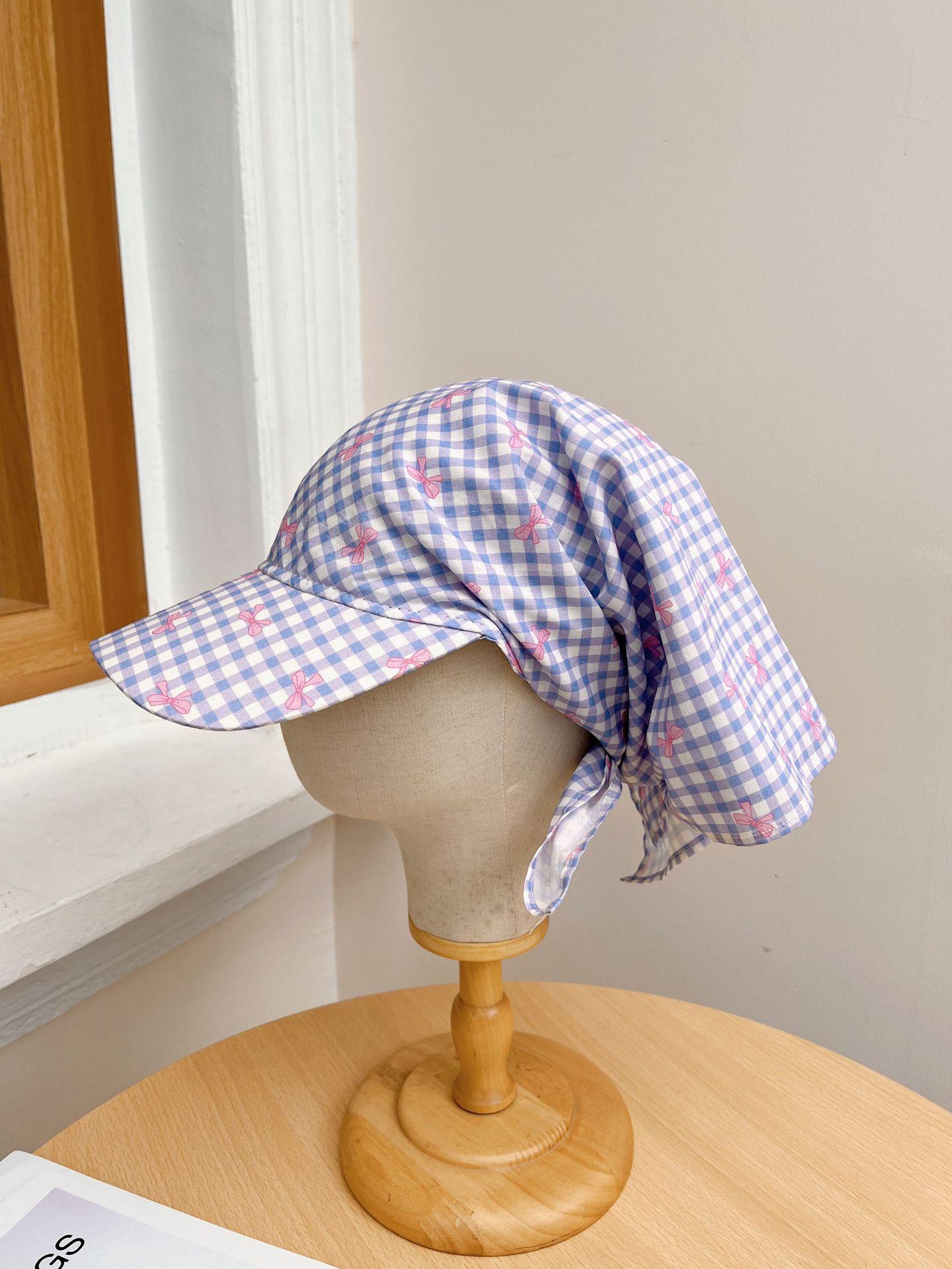 Летняя мятно-зеленая клетчатая шляпа с кружевом в мелкий цветок для женщин, для путешествий на открытом воздухе, маленькая, свежая, большая, с карнизами, солнцезащитный платок, шляпа прилив M(56-58cm) фиолетовый