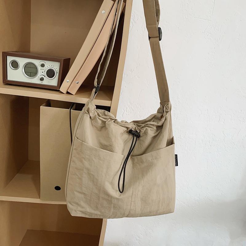 Летняя новая большая вместительная нейлоновая сумка-мешок со складками на плечо на кулиске, дорожная, для отдыха, мессенджер, сумка-ведро хаки