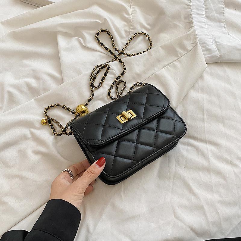 Летняя новая маленькая квадратная сумка на золотой шариковой цепочке, женская сумка с ароматом, на одно плечо, модная женская сумка, трендовая сумка через плечо для мобильного телефона чёрный
