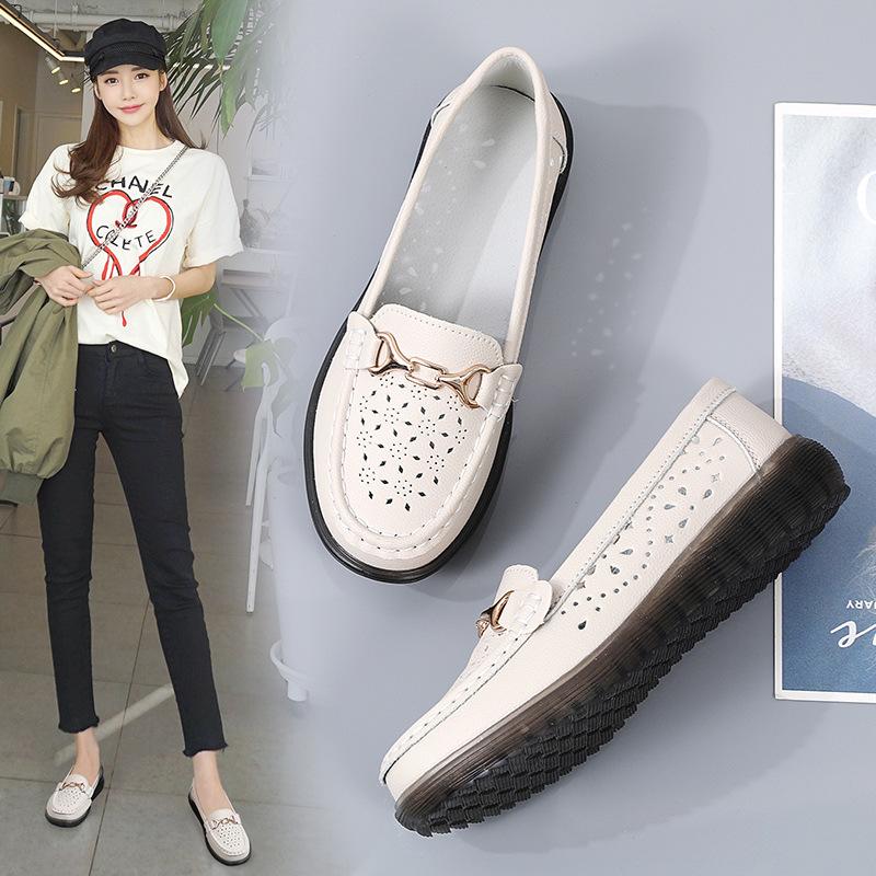 Летняя новая полая женская обувь среднего и пожилого возраста, удобная, на мягкой подошве, обувь для мамы, большой размер, плоская, ленивая обувь, обувь Doudou на одной педали 35