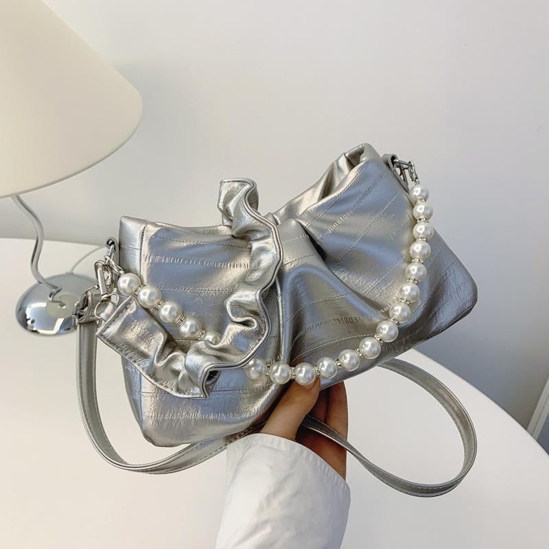 Летняя новая серебристая маленькая сумка женская сумка 2025 плиссированная жемчужная сумочка универсальная на плечо подмышку сумка мессенджер серебряный
