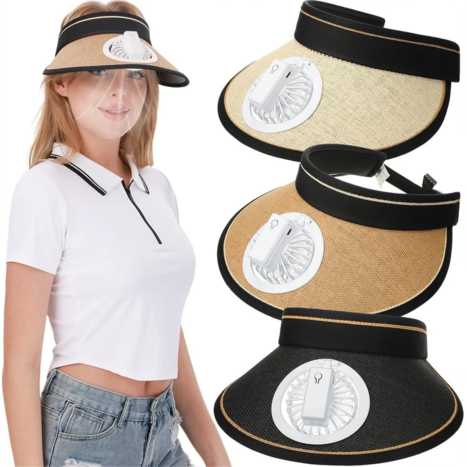 Летняя новая солнцезащитная шляпа с вентилятором на солнечной энергии, зарядка через USB, пустой верх, уличная солнцезащитная шляпа для пары, дышащая бейсболка