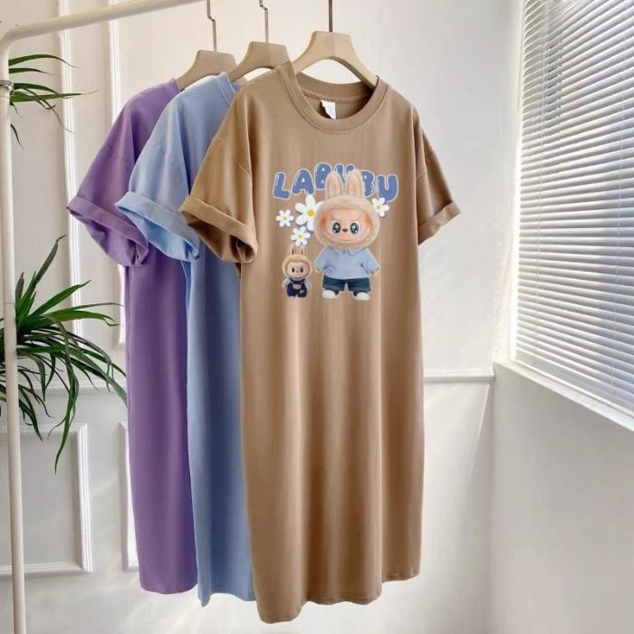 Летняя новая футболка, юбка, женское длинное платье большого размера, свободная ночная рубашка до колена 4XL