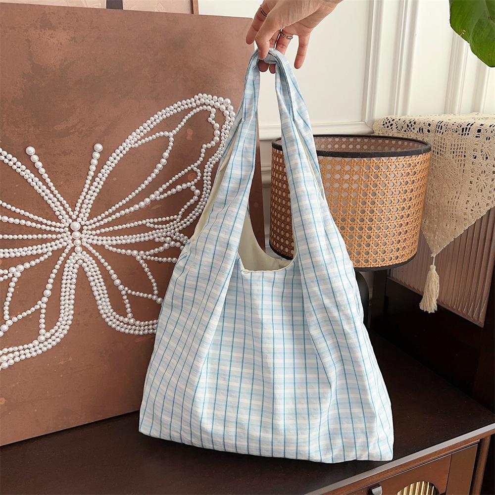 Летняя новая холщовая сумка в стиле колледжа с пузырьковой клеткой, маленькая, свежая, большая вместительная, повседневная сумка-жилет