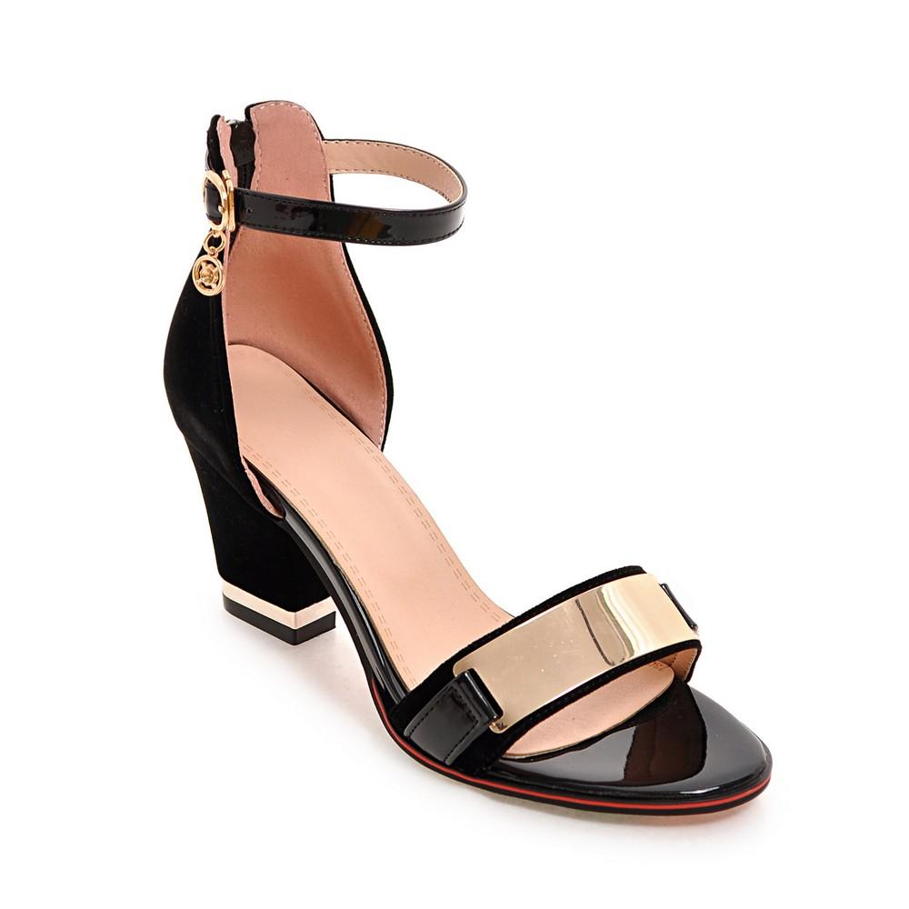 Летняя обувь Женские сандалии Пип Кэжуал Блочные каблуки Шлепанцы Мода Блеск Ремешки на щиколотке Вечерние Свадебные туфли Женские Красные Черные 39 чёрный