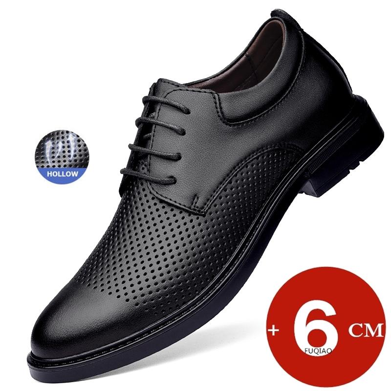 Летняя обувь Оксфорды из натуральной кожи с перфорацией для деловых мужчин, обувь с лифтом, стелька для увеличения роста на 6 см, формальная, дышащая, большие размеры 35-47 35