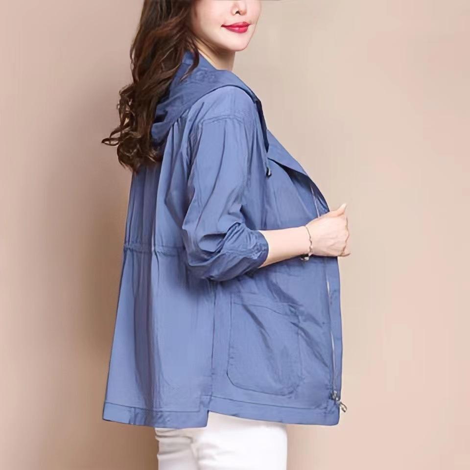 Летняя одежда для защиты от солнца для мам больших размеров, легкая дышащая одежда средней длины для защиты от солнца, универсальная куртка XXXXL синий