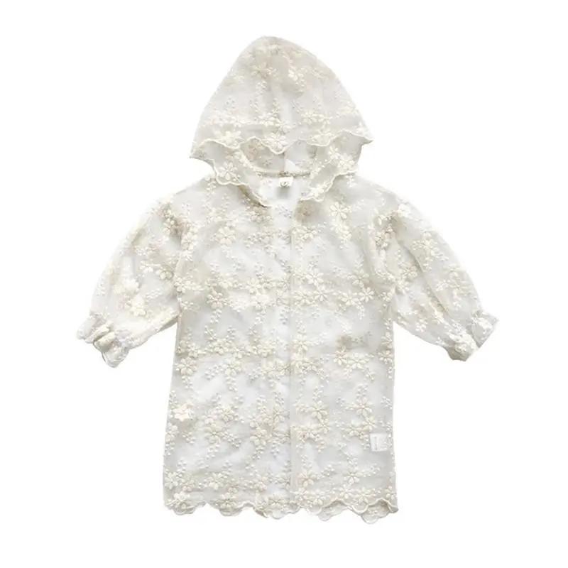 Летняя однотонная кружевная тонкая секция для девочек с солнцезащитным кремом и длинным рукавом, красивая милая куртка 80 белый
