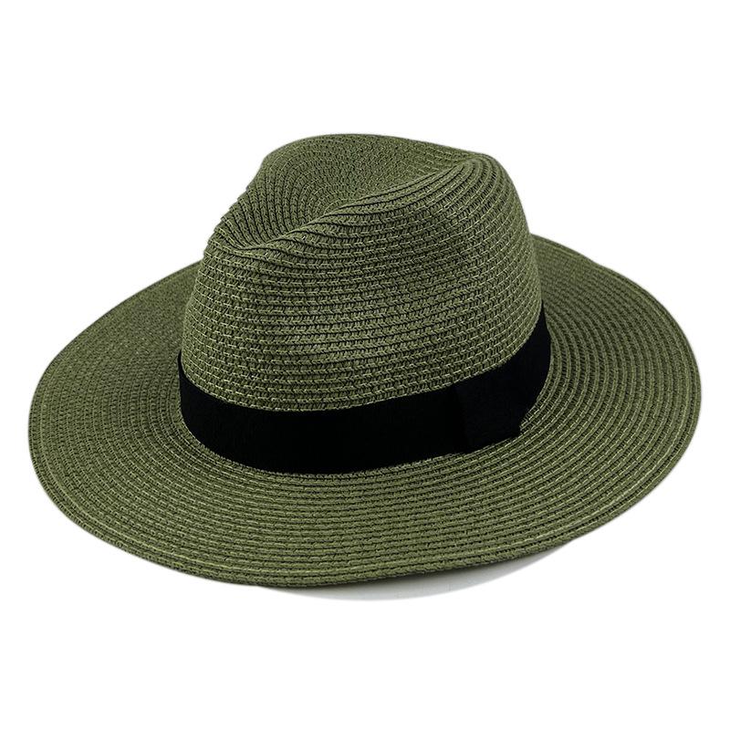 Летняя панама с широкими полями, соломенная федора - уличная солнцезащитная пляжная шляпа Small Buckle (Non-fixed Strap) темно-зеленого