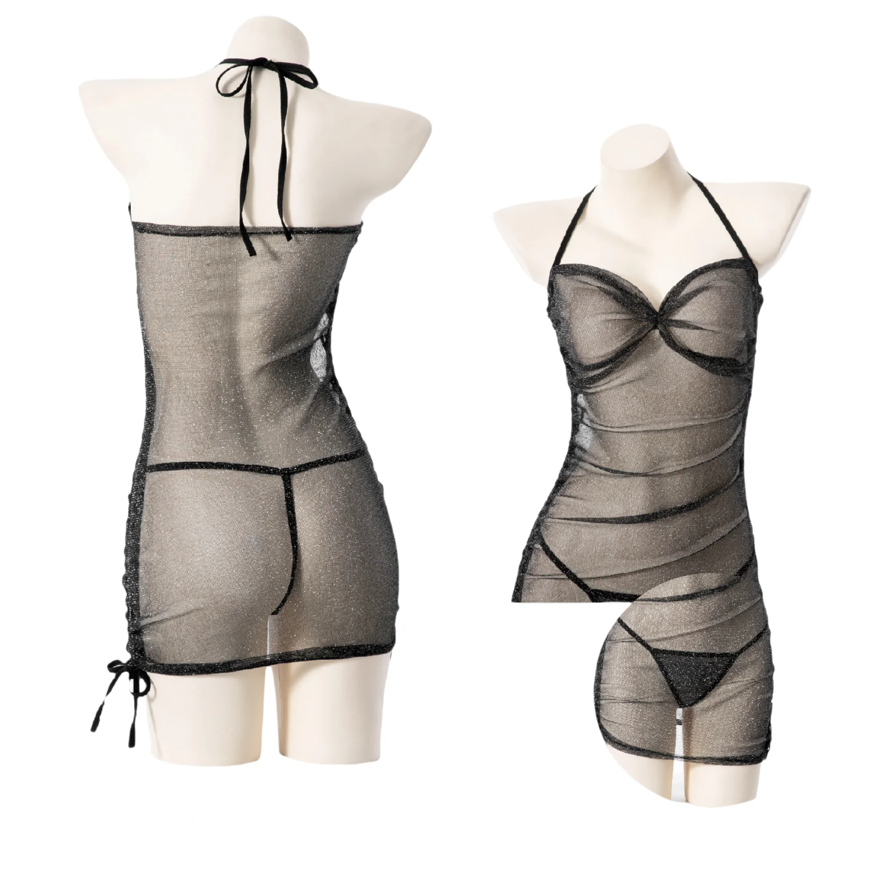 Летняя пикантная женская ночная рубашка, прозрачная ночная рубашка, винтажные ночные рубашки, пижама, одежда для сна, блестящее платье с лямкой на шее, нижнее белье