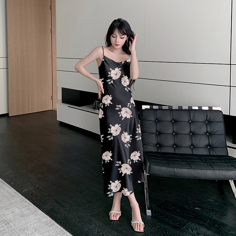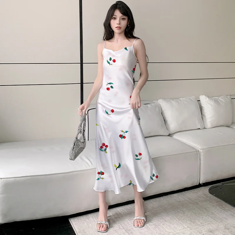 Летняя пикантная одежда для сна, ночное платье, женская пижама из ледяного шелка, женская пижама, длинная Домашняя одежда с принтом в национальном стиле, нижнее белье