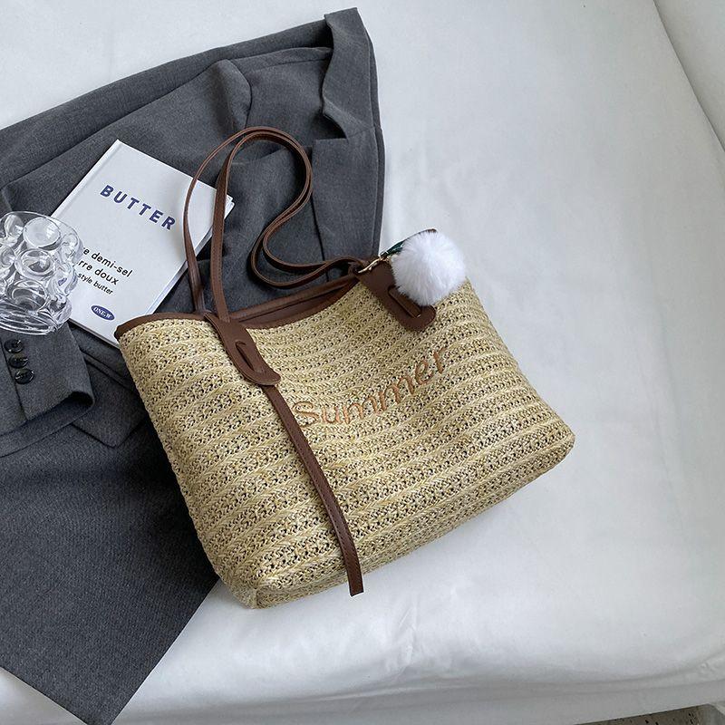 Летняя плетеная сумка из соломы Женская 2025 Новое поступление Приморская пляжная плетеная сумка Большая вместимость Доступная роскошь На плечо Дорожная сумка-тоут Brown