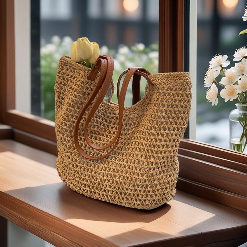 Летняя плетеная сумка из соломы, женская новая плетеная сумка из хлопковой нити, большая вместимость, на плечо, сумка-мессенджер, сумочка хаки