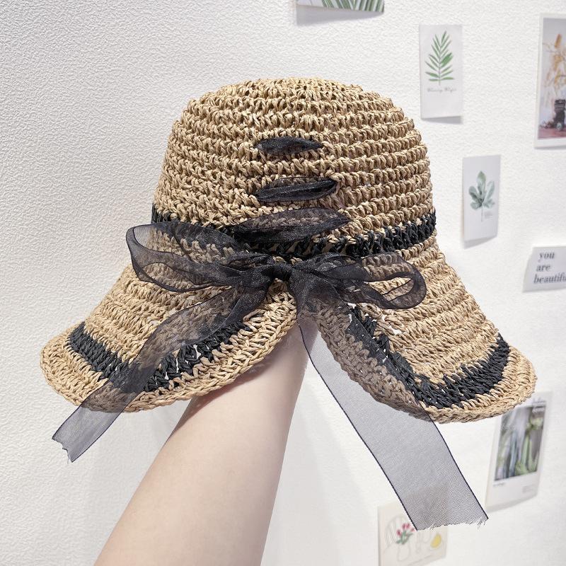 Летняя пляжная соломенная шляпа женская корейская версия кружевная шляпа от солнца с бантом для отдыха с большими полями устойчивая к ультрафиолетовому излучению шляпа от солнца one size хаки