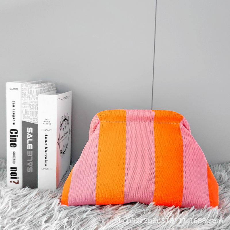 Летняя пляжная сумка-клатч контрастного цвета, маленькая вязаная крючком сумочка, вязаный клатч-пельмень, летняя пляжная сумка, повседневная сумка с цветными блоками оранжевый/розовый