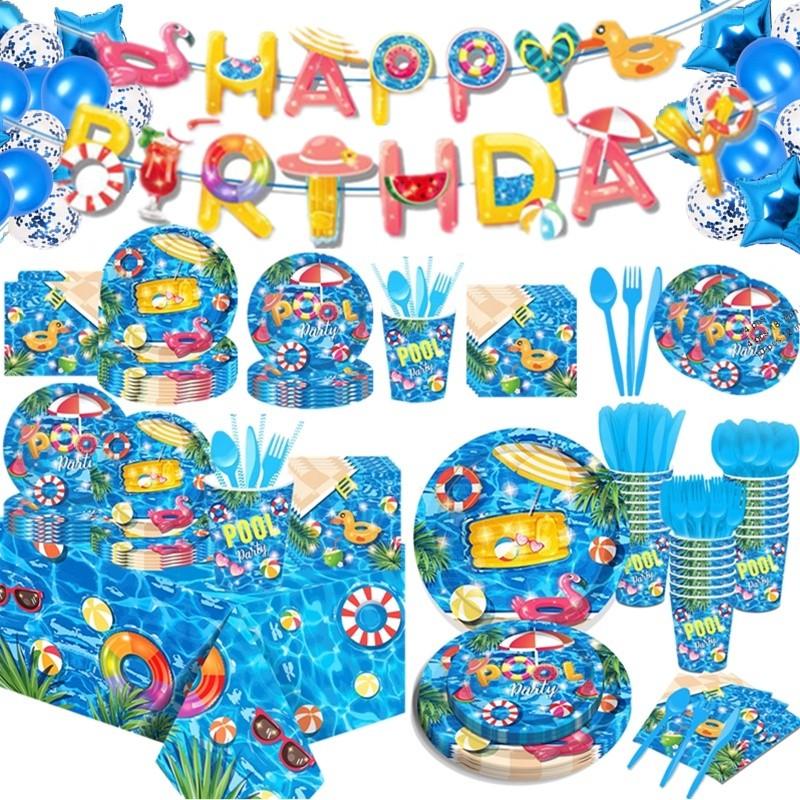 Летняя пляжная тематическая посуда набор воздушных шаров детский день рождения бассейн тематическая вечеринка одноразовая посуда принадлежности
