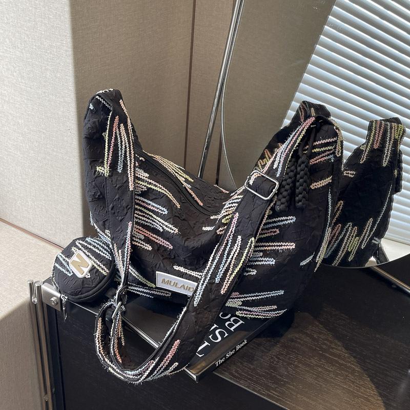Летняя повседневная нишевая сумка-мессенджер для девушки-пельмешка 2025 новая модная сумка большой вместимости легкая наплечная сумка чёрный