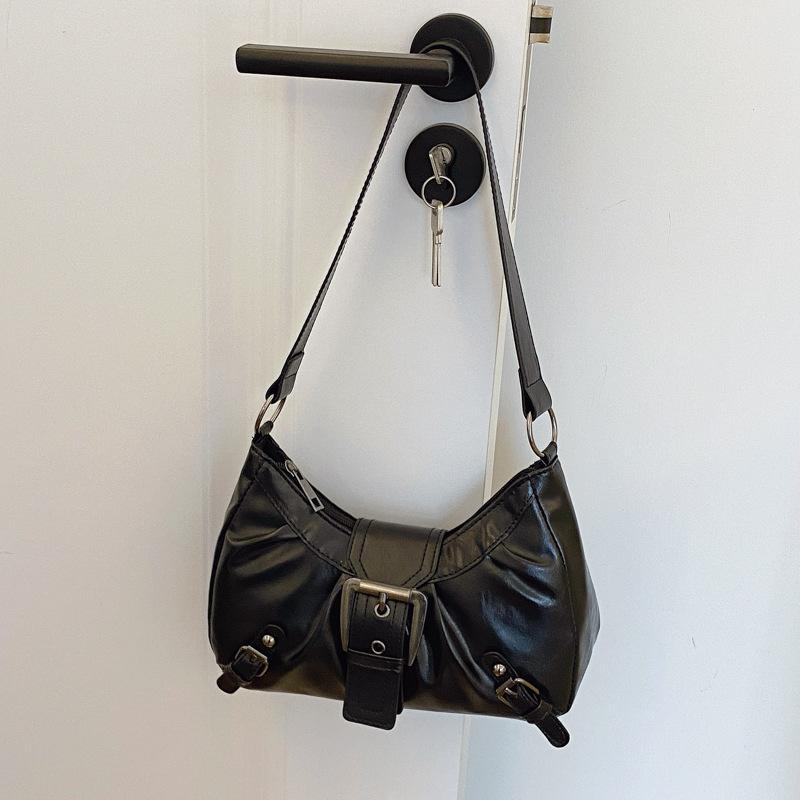 Летняя простая трендовая текстурная сумка под мышкой женская нишевая дизайнерская продвинутая однотонная персонализированная повседневная сумка на плечо чёрный