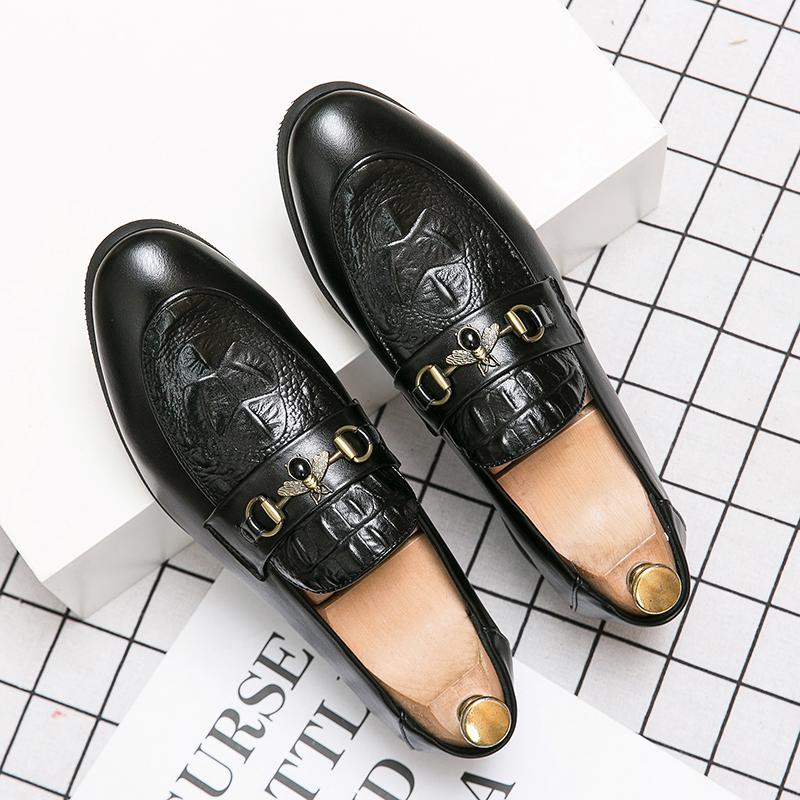 Летняя роскошная свадебная обувь Мужская роскошная обувь из лакированной кожи с крокодиловым узором Деловые лоферы Мужские банкетные туфли для платья 43 чёрный