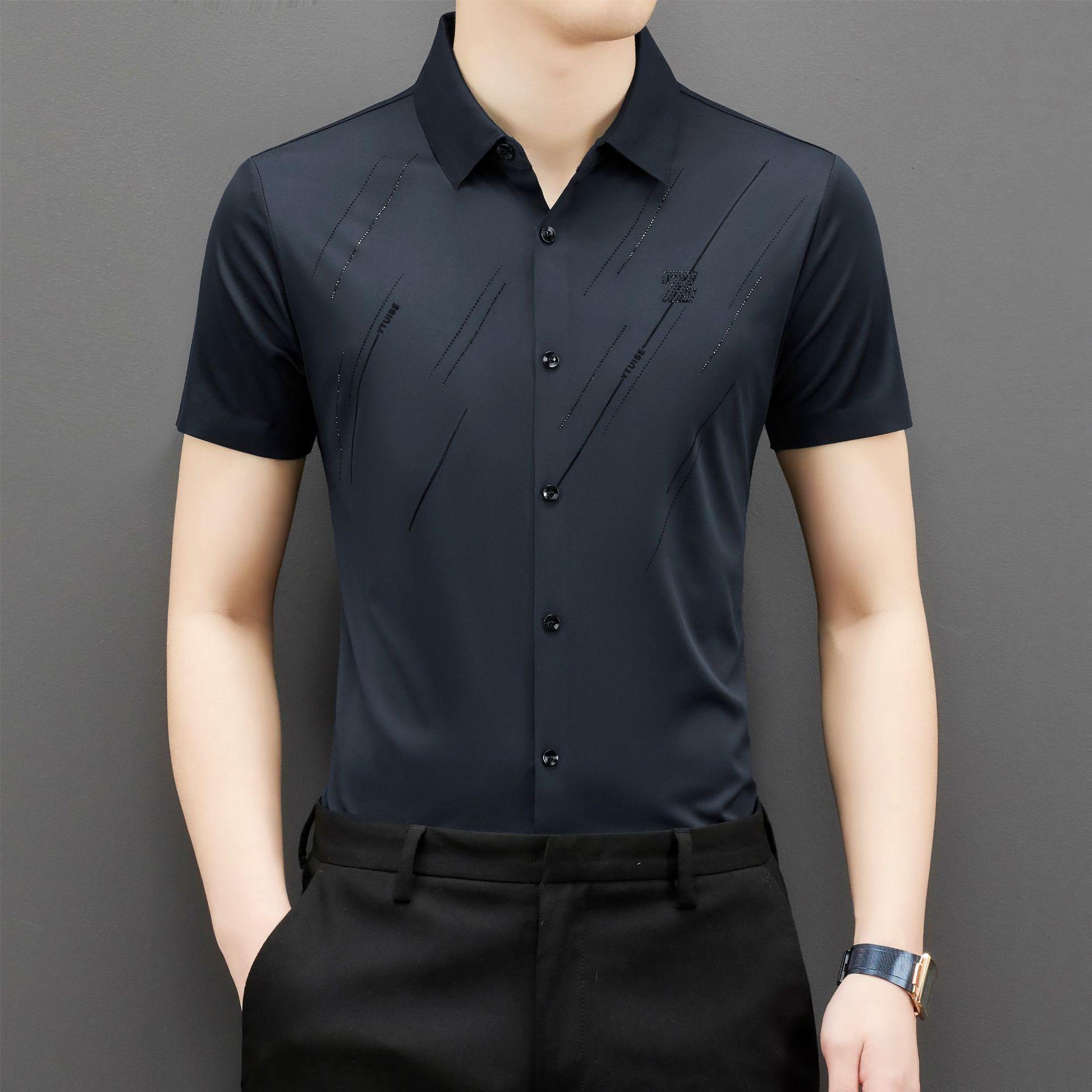 Летняя рубашка с коротким рукавом, новая бесшовная мужская рубашка, модная, для молодежи и среднего возраста, деловая, однотонная, тонкая рубашка L
