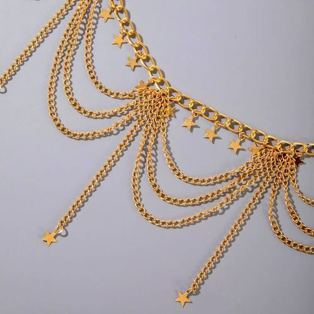 Летняя серебряная металлическая цепочка для тела, золотой пояс с кисточками, поясная цепочка в этническом стиле, украшения на талию, украшения для тела для девочек