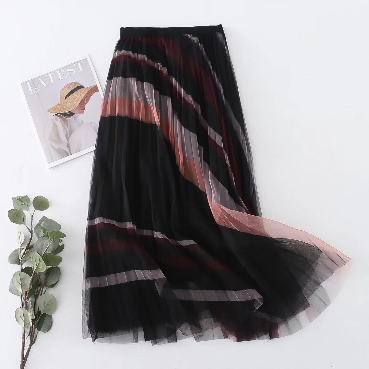 Летняя сетчатая плиссированная юбка с принтом, высокая талия, узкая универсальная юбка средней длины, юбка-полудлинная, женские свободные юбки One Size