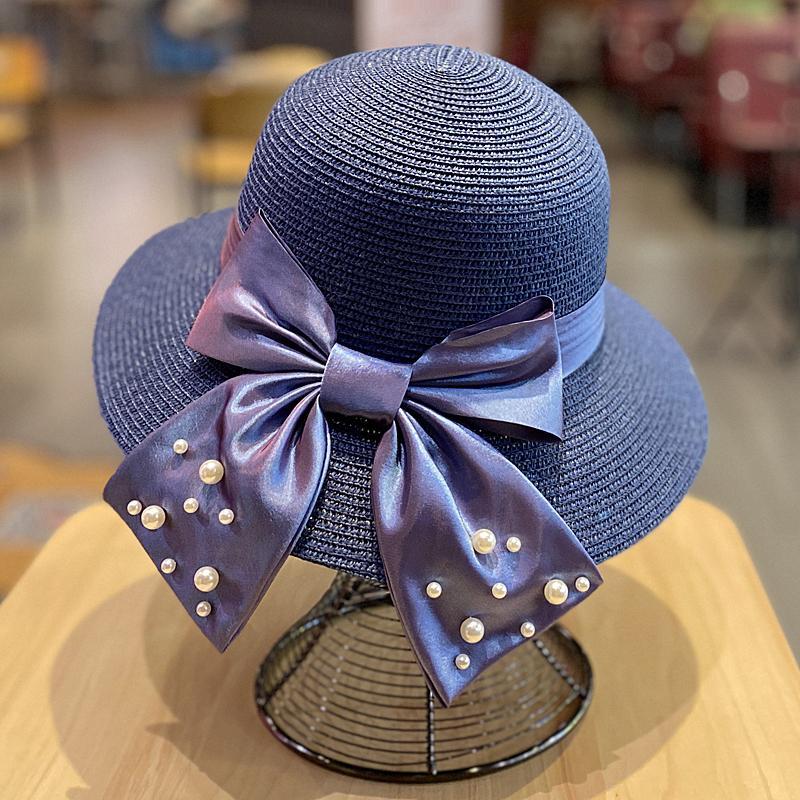 Летняя солнцезащитная шляпа, модная соломенная шляпа с большим бантом и жемчугом, детская дорожная шляпа-тазик, шляпа от солнца, панама ONE SIZE
