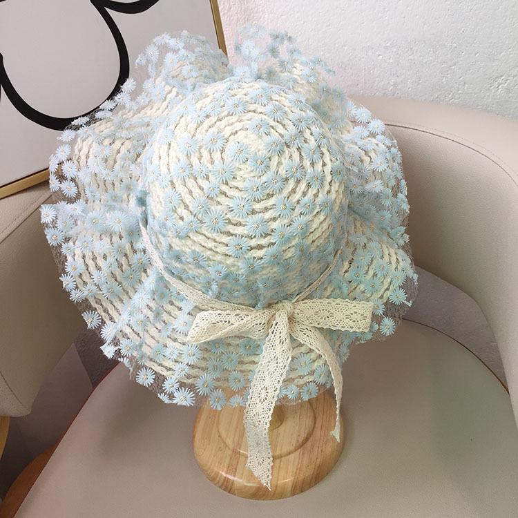 Летняя соломенная пляжная шляпа для девочек с полями и бантом-ромашкой 50-52CM