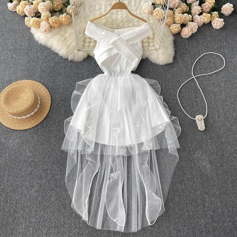 Летняя французская маленькая мужская талия на одно плечо и тонкая дизайнерская нишевая сетчатая юбка Fairy