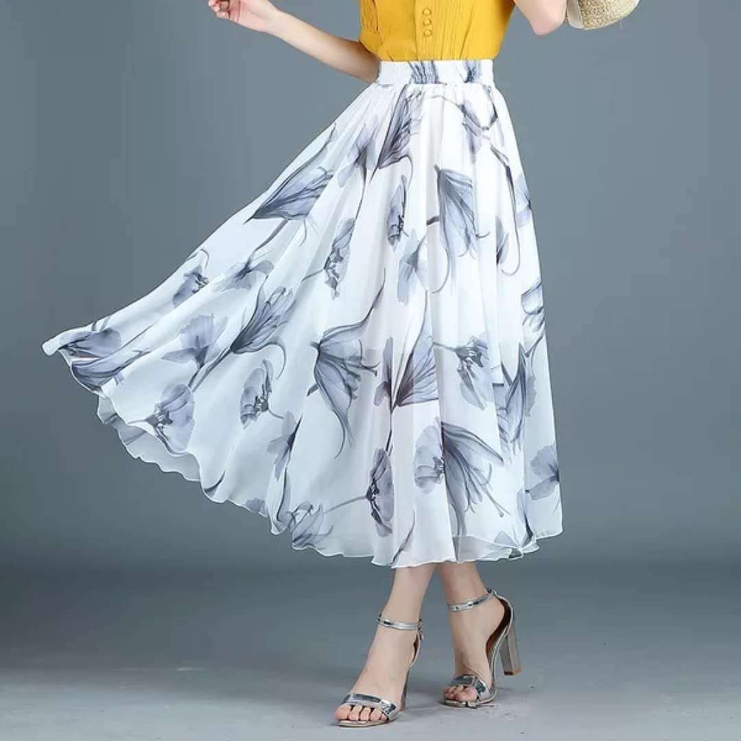 Летняя шифоновая юбка, длинная юбка больших размеров, богемная цветочная большая распашная женская пляжная юбка, длинная юбка, женская юбка трапециевидной формы one size