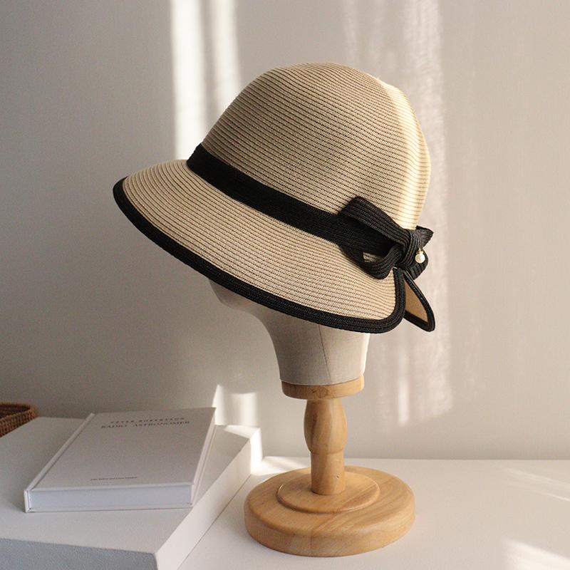 Летняя шляпа из соломы с бантом, жемчужная, с широкими полями, солнцезащитная шляпа для морского отдыха, пляжная шляпа, детская Adult (55-58cm) бежевый