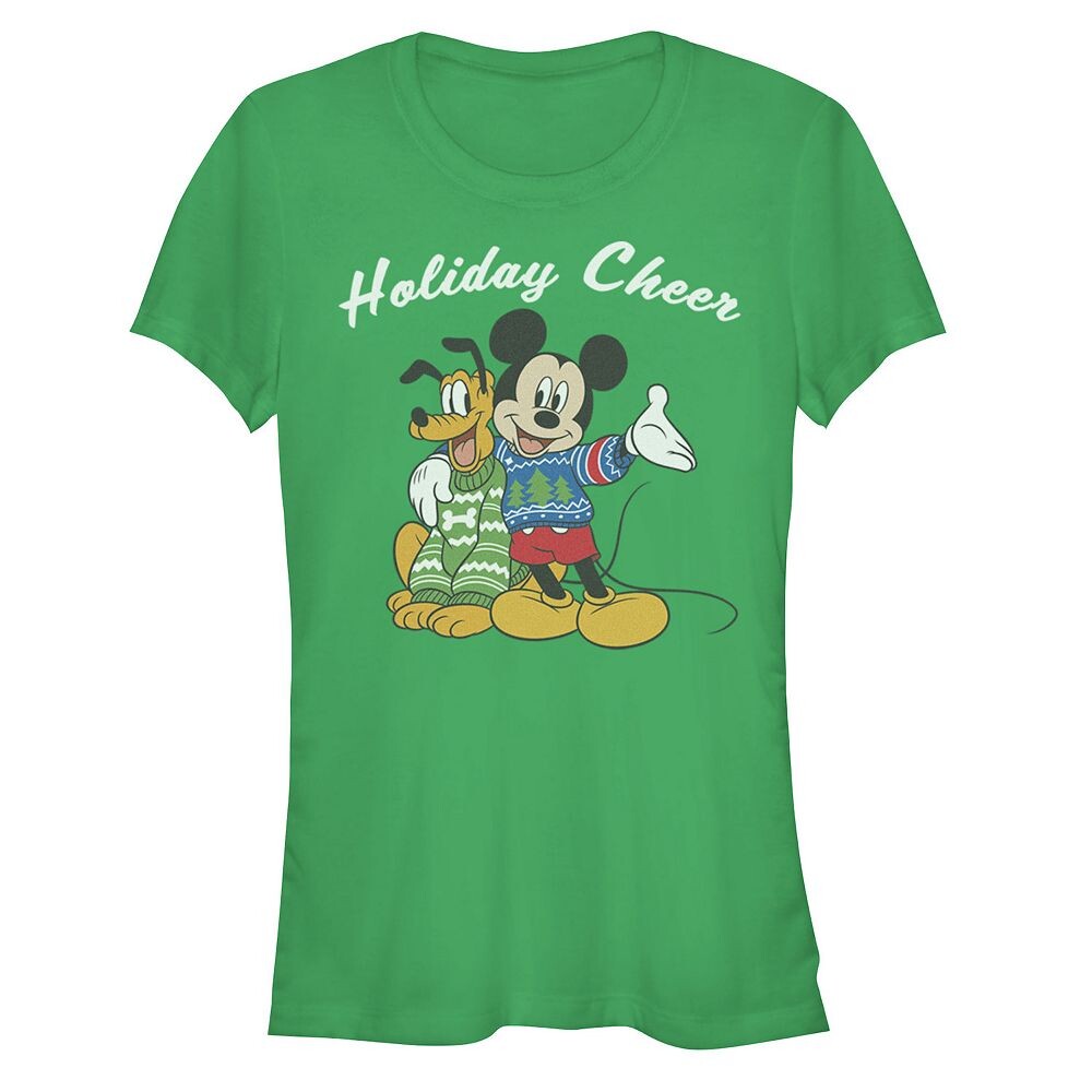 Футболка с изображением Микки и Плутона для юниоров Disney's Mickey Mouse Holiday Cheer, цвет Kelly