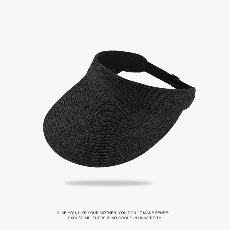 Летняя шляпа от солнца, женская складная портативная шляпа с открытым верхом, защита от ультрафиолетовых лучей, большая широкая поля, закрывающая лицо, соломенная простая шляпа Average size (56-60cm) чёрный