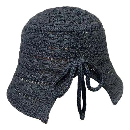 Летняя шляпа-панама крючком с ажурным дизайном, шляпа для защиты от солнца с широкими полями и разрезом сзади, вязаная уличная шапка на шнуровке чёрный