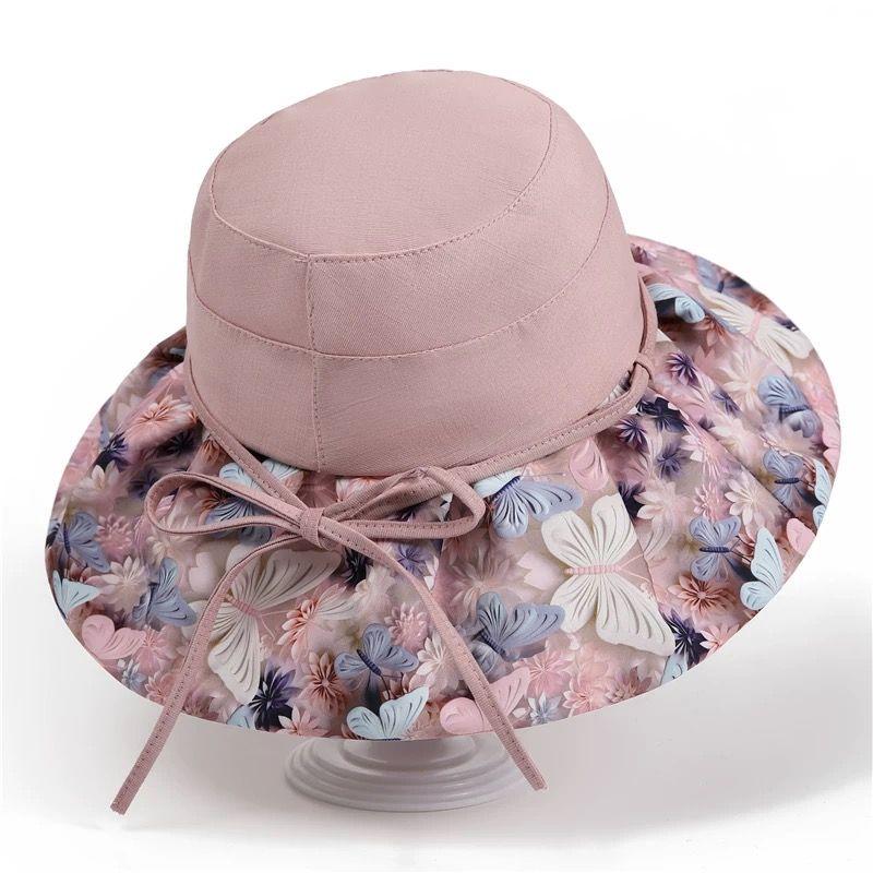Летняя шляпа рыбака с большими полями, женская шляпа с принтом и бантом, закрывающая лицо, пляжная шляпа, солнцезащитная шляпа с защитой от ультрафиолета