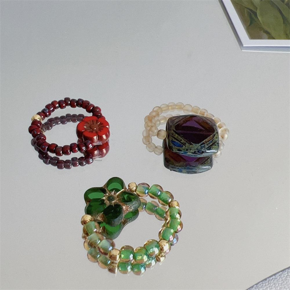 Лето Элегантное Сердце Фея Бусина Сладкий Цветок Корейский Стиль Кольцо Модные Ювелирные Изделия Женское Эластичное Кольцо